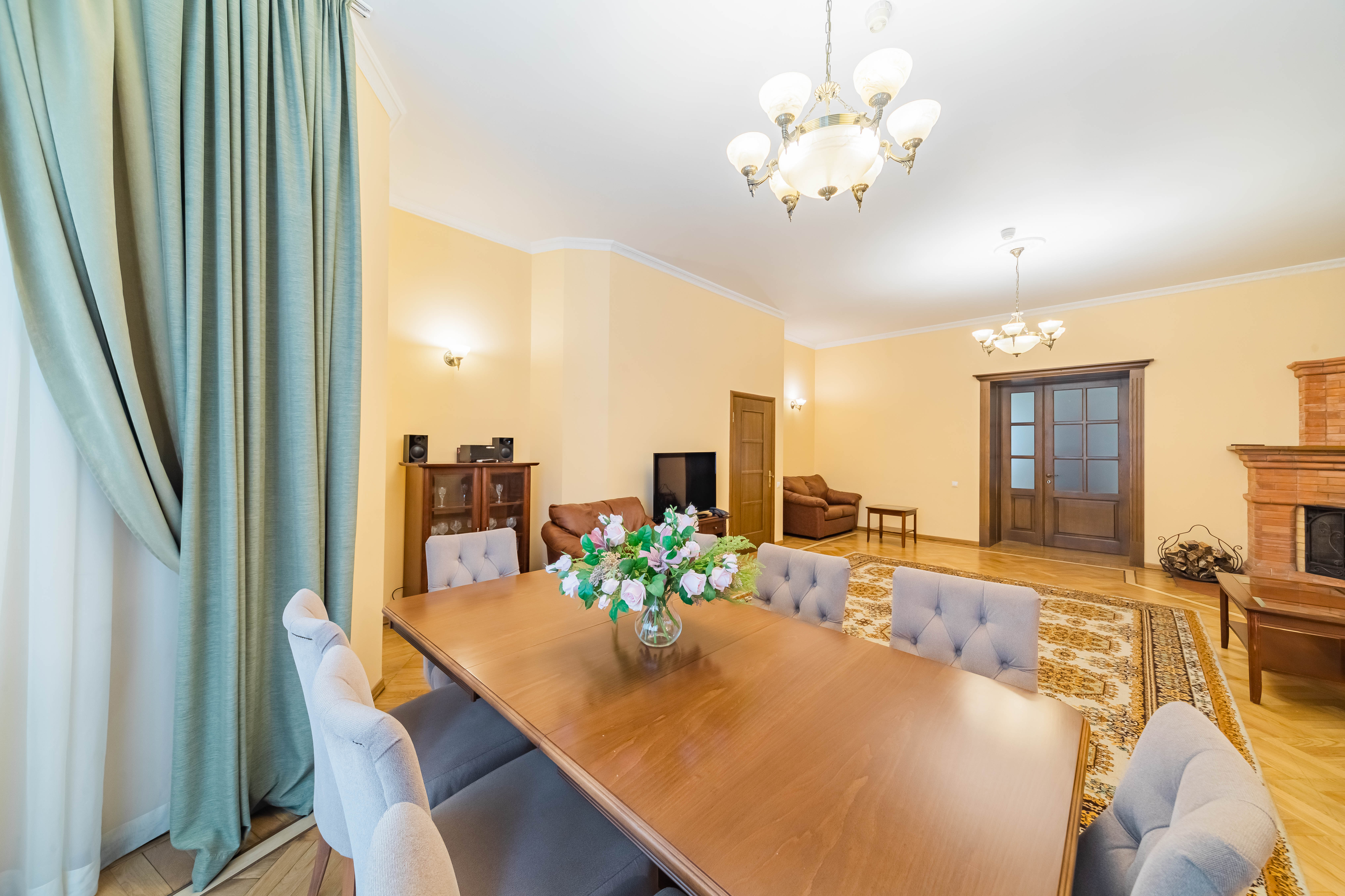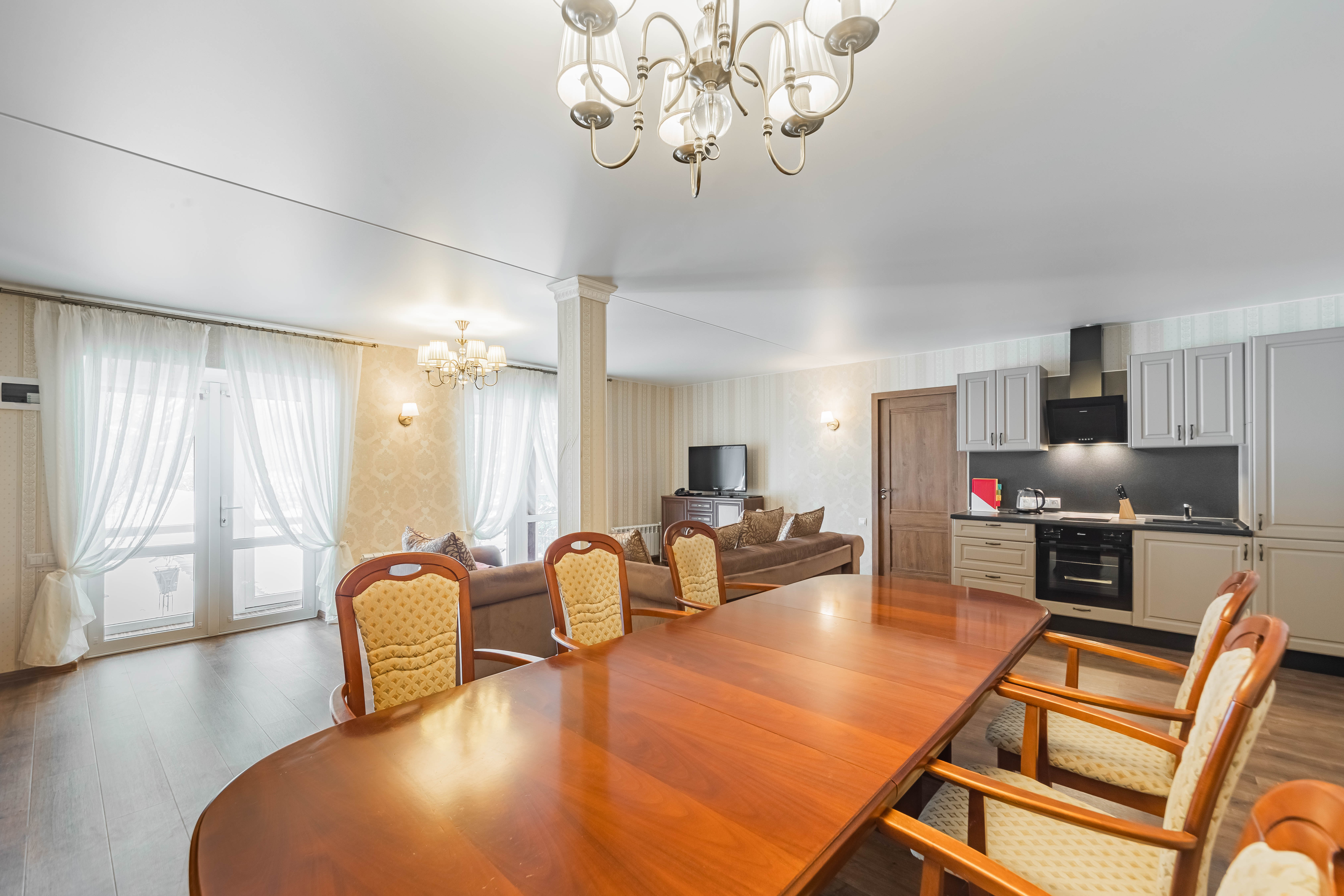 - Полный комплект удобств: оборудованная кухня, ванные комнаты, гостиная и столовая зона — всё для домашнего комфорта;