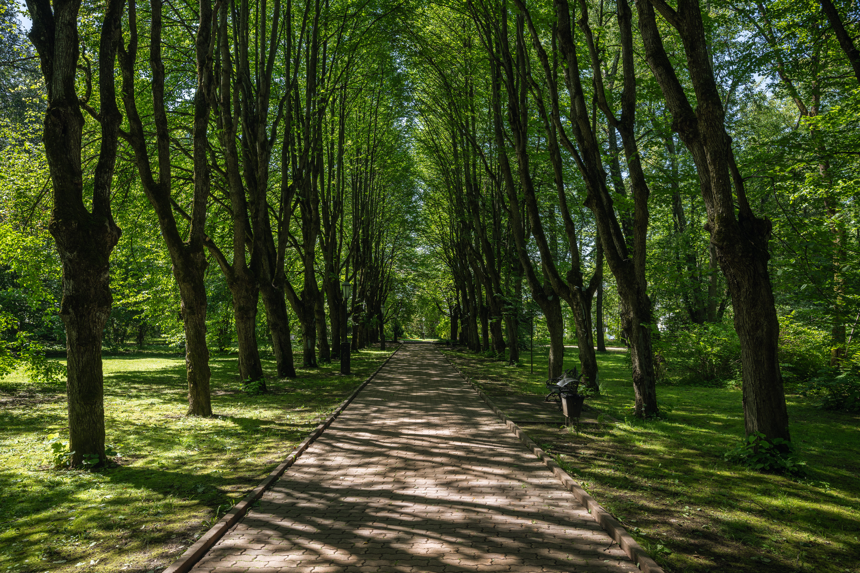 - Тенистые аллеи, вымощенные дорожки и скамейки для отдыха;